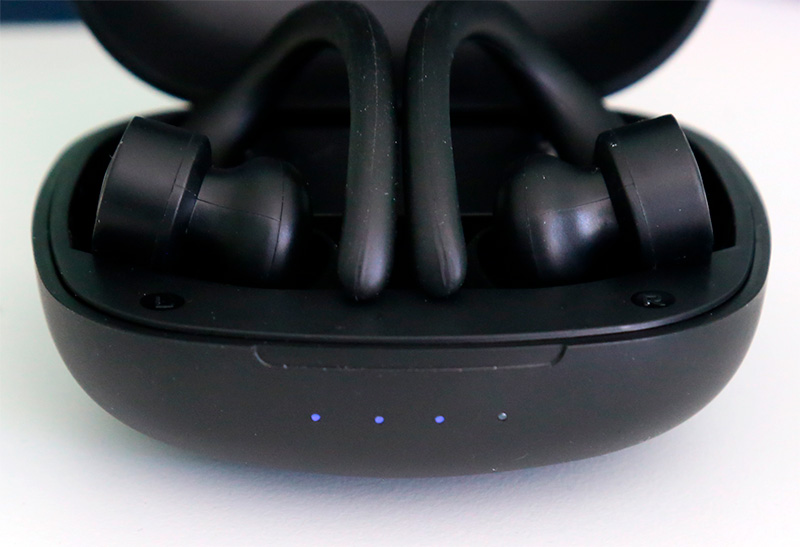 В ушах наушники сидят прямо-таки прекрасно: очень комфортно и очень надежно. Без преувеличения могу сказать, что это самые удобные TWS-наушники, что у меня были! Ну и понятно, что с такой конструкцией они даже при интенсивном занятии спортом (а они и позиционируются прежде всего как спортивные наушники) просто не имеют шансов выпасть!