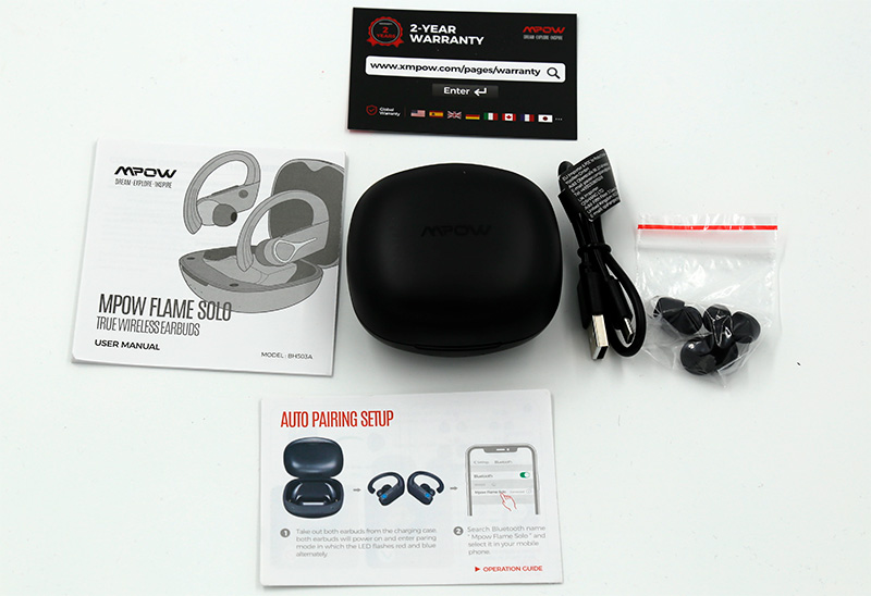 И вот недавно я наткнулся на интересную, как мне показалось, модель вполне достойного производителя, которая называется Mpow Flame Solo: эти TWS-наушники крепятся специальным заушным крючком - я такое у TWS-наушников, по-моему, вообще встречаю первый раз.