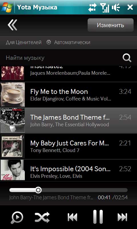 Простенький медиаплеер, который, однако, может скачивать и воспроизводить музыку со специального онлайнового сервиса Yota. Музыка подразделяется на различные категории и по рейтингам.
