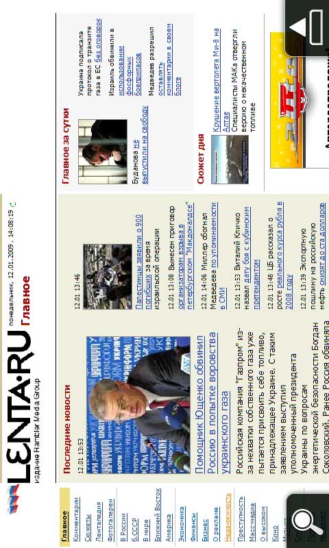 Далее, упоминалось, что сенсор поворота экрана работает только в браузере. Причем, кроме сенсора, никакими средствами сделать альбомную ориентацию нельзя (стандартные средства WM просто отключены). Сам я в руках аппарат, увы, пока не держал, поэтому хотелось бы заранее представлять себе - есть ли в нем такие грабли.