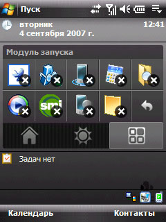 Третий раздел - модуль запуска часто используемых программ. Он также рассчитан на управление пальцем, поэтому кнопки запуска - большие и удобные. Туда можно поставить ссылки на девять программ (кнопок всего десять, но последняя используется для выхода в режим редактирования ссылок):