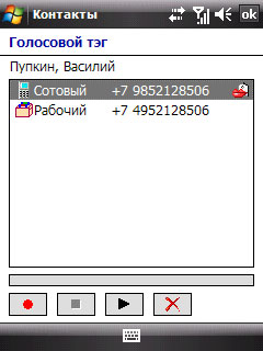 Голосовой набор работает следующим образом. Выбираете какой-то контакт. Там есть пункт меню "Добавить голосовой тэг". По каждому из телефонов можно задавать свой тэг, причем его можно записать как с телефона, так и с гарнитуры: