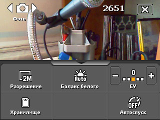 Фото - 2 мегапикселя в режиме фото 1600х1200, видео - 320х240 15fps, 3gp