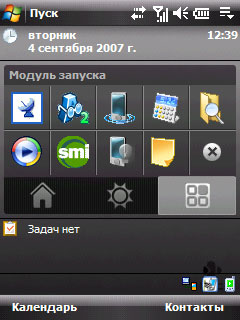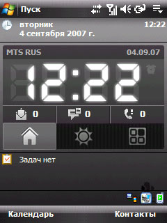 Как видите, экран довольно заметно отличается от обычной Windows Mobile 5 или 6, потому что здесь львиную долю занимает тот самый HTC Home.