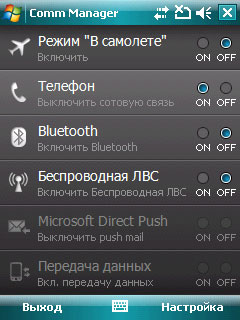 Остальные программы и настройки базовой поставки входят в операционную систему Windows Mobile 6.