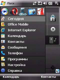 В отличие от HTC Touch, где снизу кроме джойстика всего две телефонные кнопки и более ничего, здесь добавлены еще две кнопки - вызов программы GPS и браузера. Причем эти кнопки можно перестраивать под вызов любых других приложений и команд.