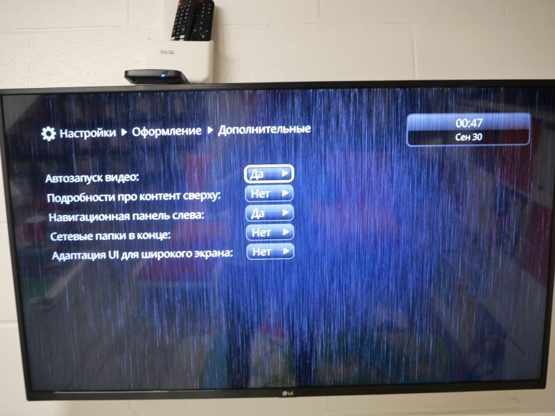Никаких танцев с бубном устройство не потребовало: при включении и подключении к домашней сети по Ethernet, медиаплеер сразу стал откликаться на сигналы пульта, и предложил обновить прошивку.