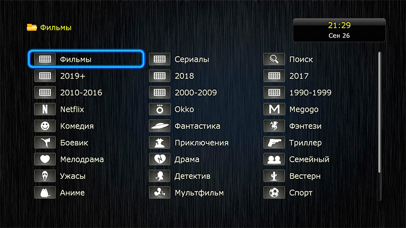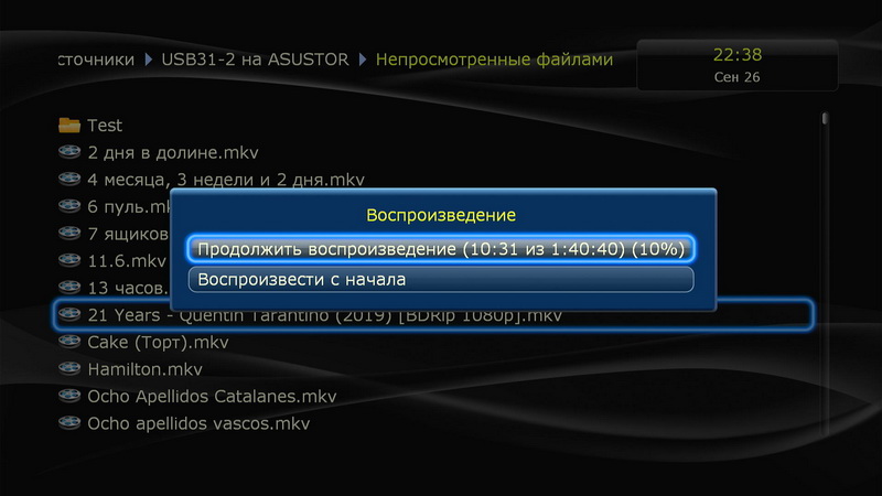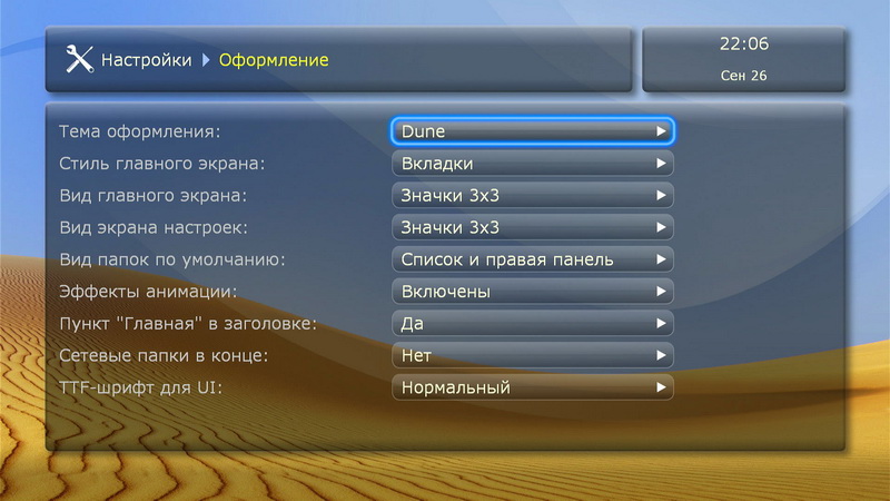 После этого появился стандартный интерфейс медиаплееров Dune, который мне хорошо знаком (он настраивается и варьируется в широких пределах).