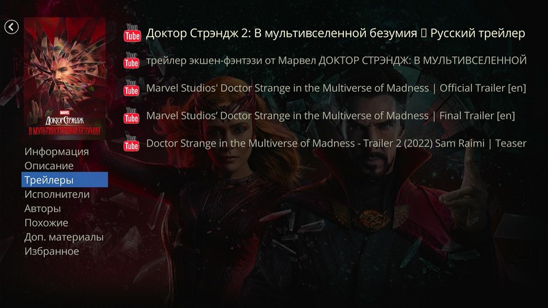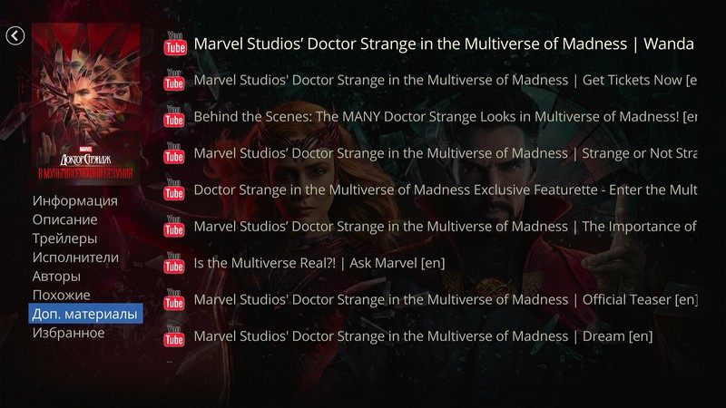 Меню SPMC - открыть основной фильм, показать все треки или запустить меню диска.