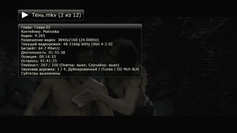 Как обычно у Dune, аудиодорожки и субтитры легко меняются и гибко настраиваются. К тому же Dune умеет искать субтитры на OpenSubtitles.org и подключать их - я этим нередко пользуюсь.