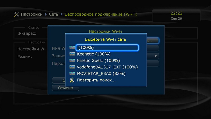 Теперь проверим подключение по Wi-Fi - отключаем проводную сеть, в настройках подключаем Wi-Fi.