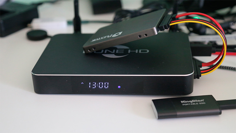 Я для теста сразу подключил к медиаплееру SSD-диск по SATA и внешний диск через USB.