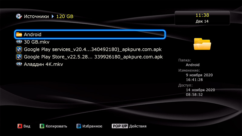 В разделе "Приложения Android" вы и вовсе можете запустить оболочку Android TV и работать с ней, как в обычном медиаплеере. Только непонятно, зачем это нужно, ведь оболочка Dune намного более удобная и продвинутая. Но тут, что называется, любое желание клиента: хотите оболочку Andoid TV - пожалуйста. Как и любое приложение из Google Play для Android TV.