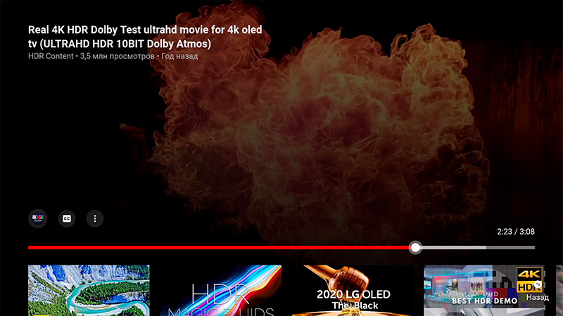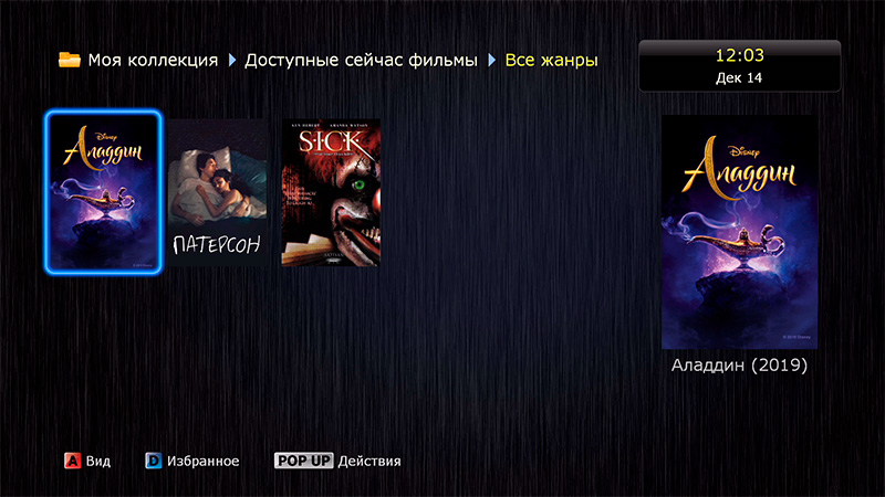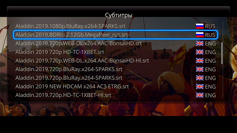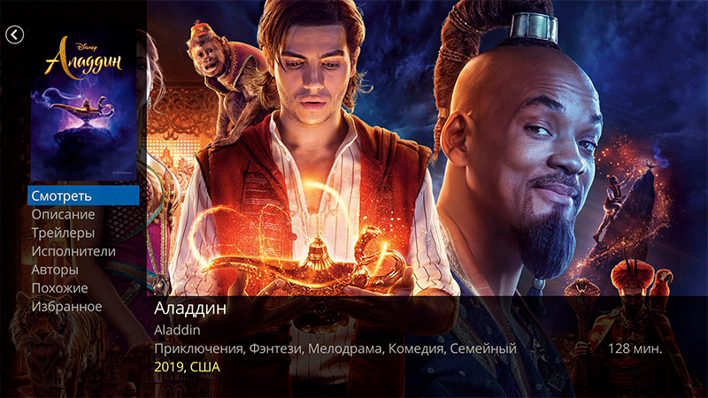 Чтобы посмотреть, как идет воспроизведение, я запустил другой фильм - "Аладдин", который в 4К и с HDR.