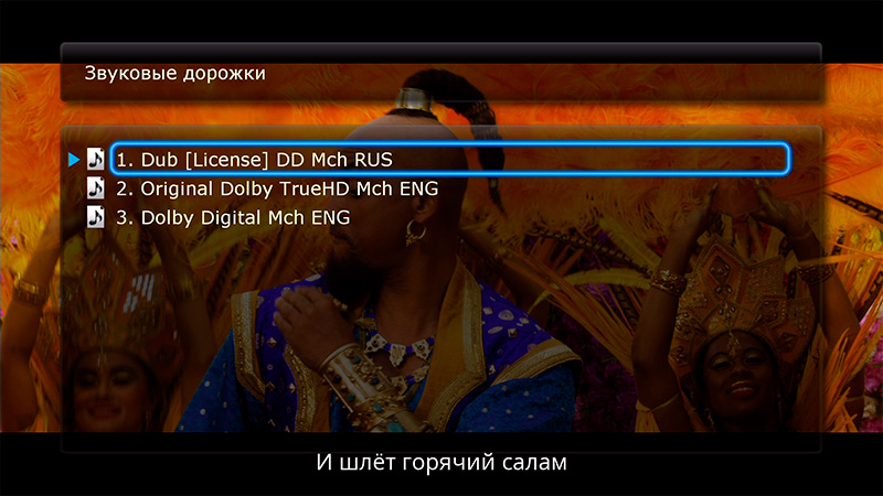 Выбор аудиодорожки.