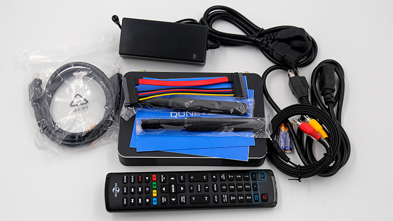 Комплект поставки: медиаплеер, краткое руководство, пульт ДУ, адаптер питания, кабель питания, кабель HDMI, кабель SATA, кабель MiniJack - 3RCA, Wi-Fi-антенны (2 шт.), элементы питания ААА (4 шт.).