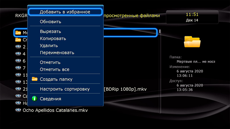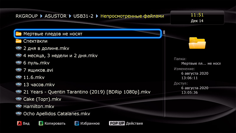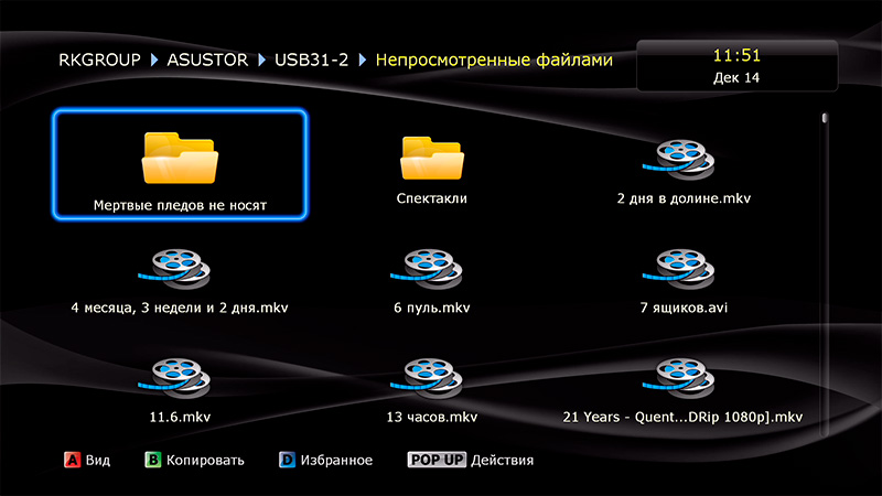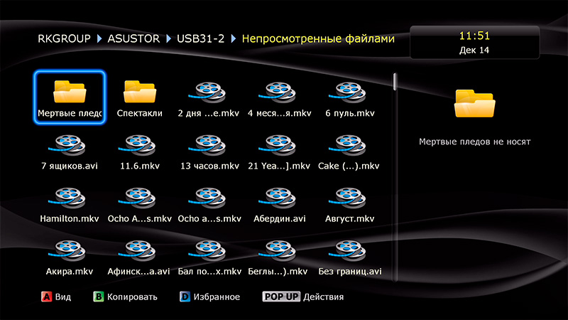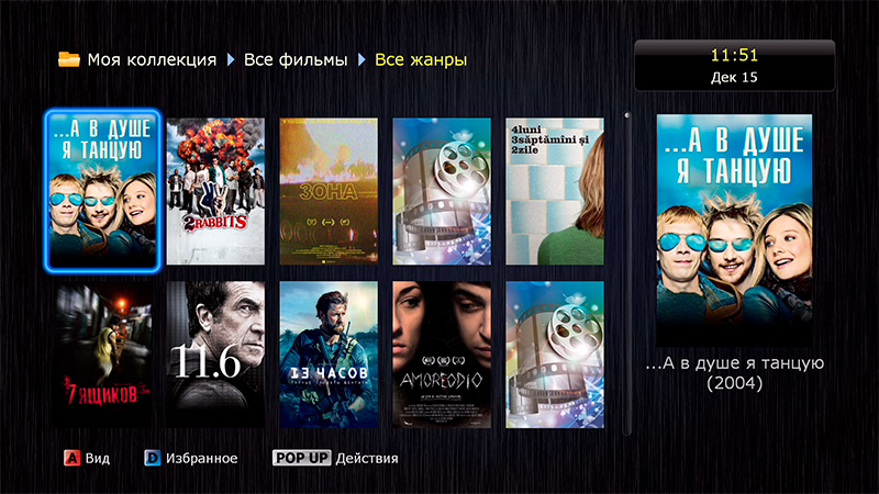 Данный плеер (как и остальные плееры Dune) умеет составлять коллекции из вашего медиаконтента (фильмов, сериалов, аудиотреков и так далее).