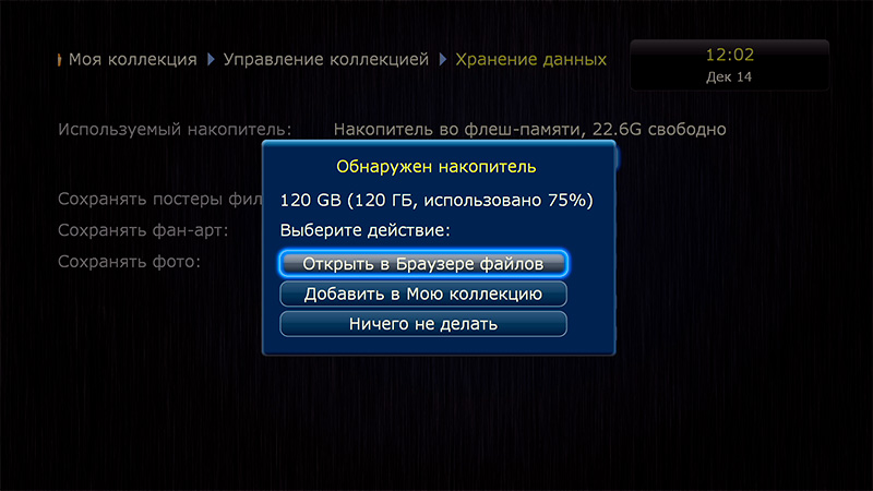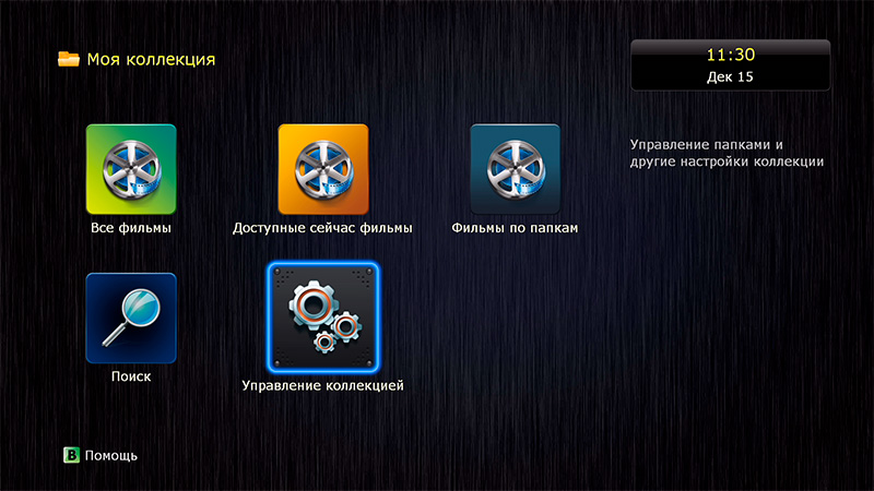 В разделе "Моя коллекция" вы можете просматривать все фильмы, доступные сейчас (мало ли, может, какой-то диск был отключен), а в "Управление коллекцией" вы можете подключать новые накопители, в том числе сетевые.