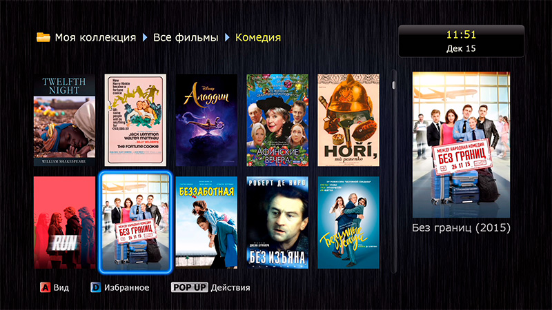 Ну и после добавления - фильмы из коллекции. Разбитые по жанрам и по подключенным сервисам.