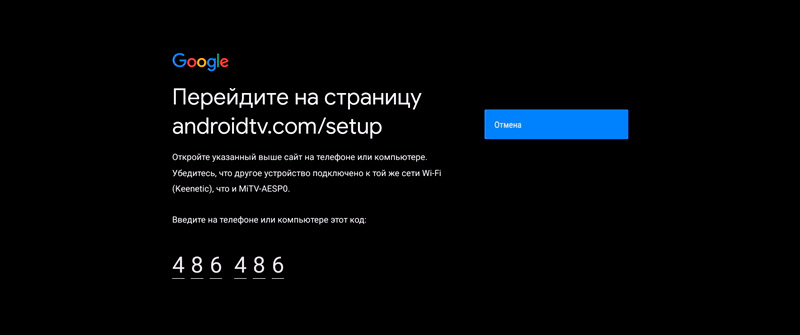 Для работы с Google Play и другими сервисами нужно подключить свою учетную запись в "Гугле". Я боялся, что придется долго и нудно вводить данные (плюс мой длиннющий пароль) через пульт с экранной клавиатурой, однако оказалось, что теперь там все на порядок удобнее. Нужно просто с компьютера-смартфона открыть соответствующую страницу, вбить код - и приставка залогинится с нужной учеткой, отлично сделано!