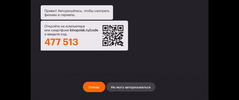 И "Кинопоиск-HD" точно так же подключил подписку - через код в приложении.