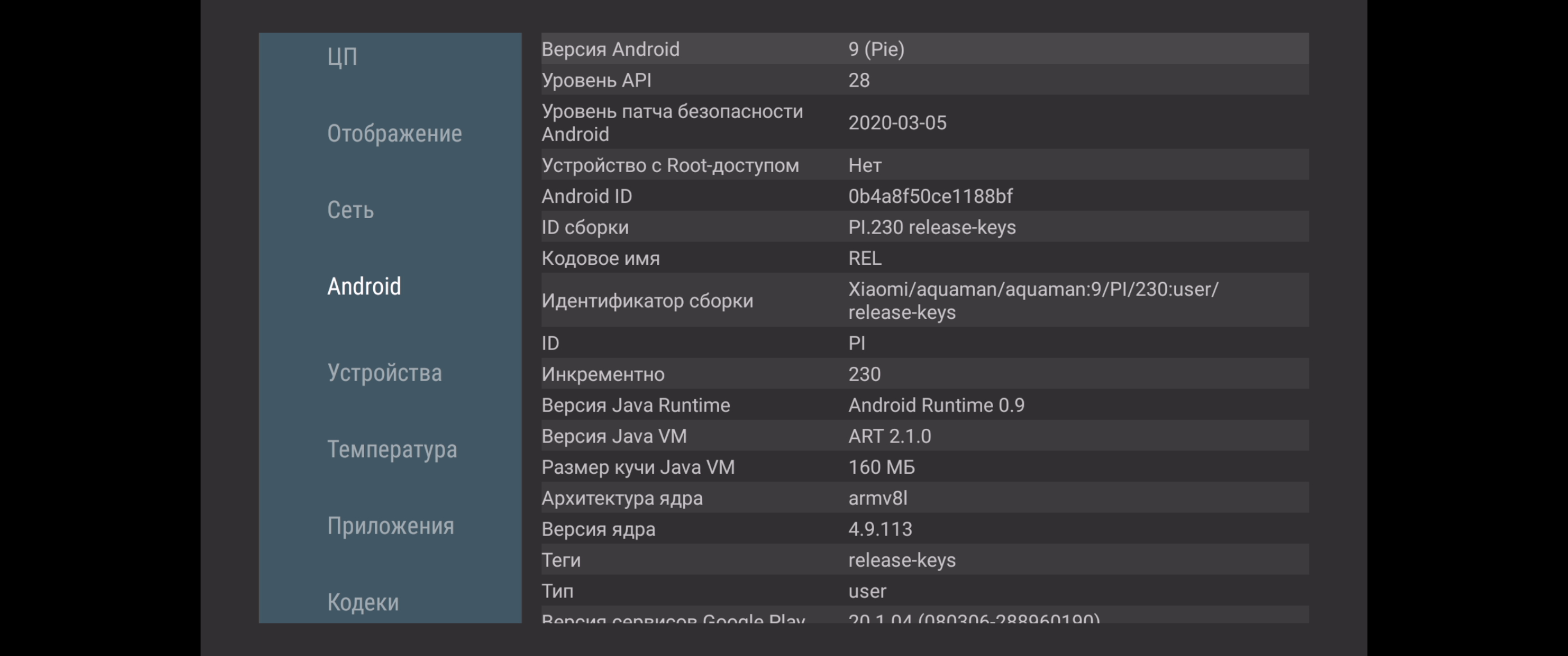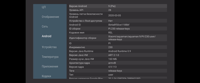 Операционная система: Google Android TV 9