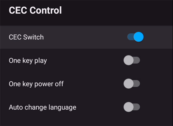 А вот настройки HDMI-CEC (полезная штука, она позволяет использовать для управления приставкой, например, пульт от телевизора).