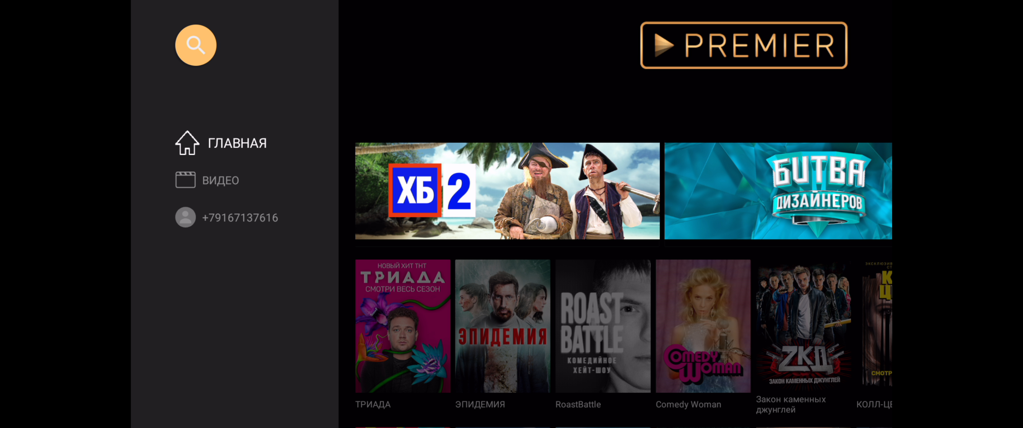 На телефоне показывает, если речь о ТНТ премьер.