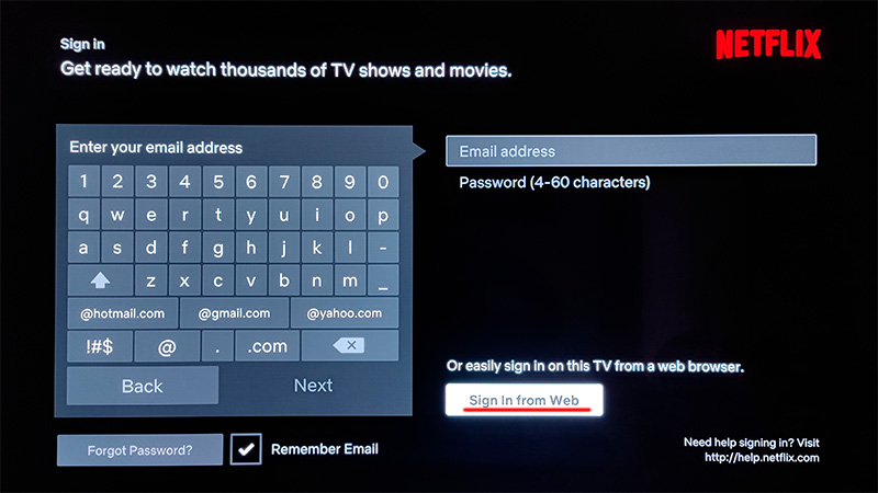 Подключение к Netflix (там тоже есть возможность подключения через приложение на смартфоне или в браузере на смартфоне).