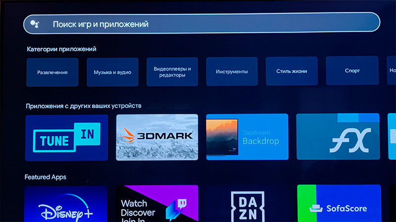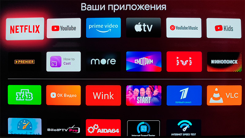 Установленные приложения можно найти в разделе "Ваши приложения". Ну и, понятное дело, можно устанавливать любые приложения для Android TV из Google Play.