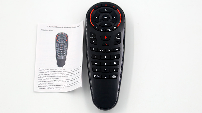 Пульт управления очень простенький. Голосового управления нет, но есть режим управления курсором (нижняя кнопка).