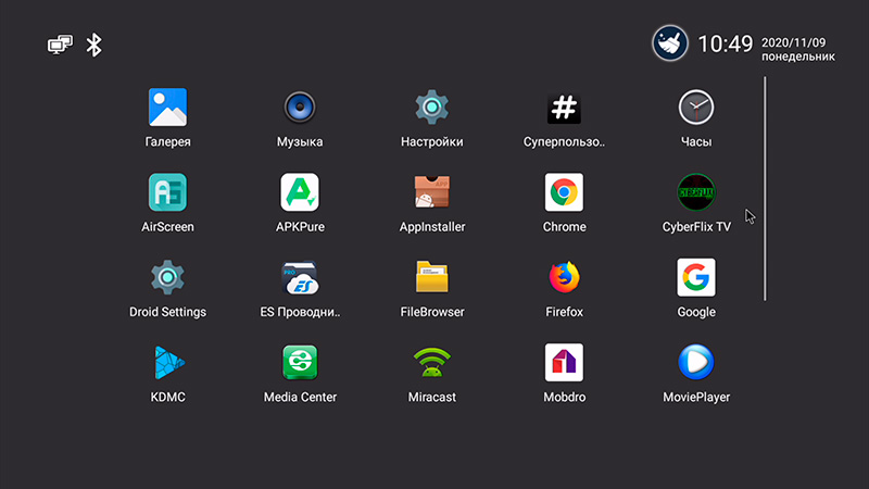 Все приложения, первоначально установленные в системе. Медиаплеер поставляется с root-доступом и суперпользователем, так что делай с ним что хошь!