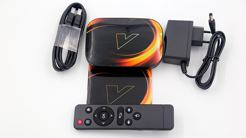 Комплект поставки: медиаприставка, адаптер питания, кабель HDMI, инструкция на нескольких языках (русский, что интересно, есть), простенький пульт.