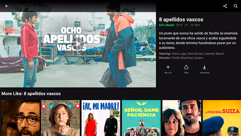 Netflix - тоже показывает, все очень удобно. В России Netflix, насколько я знаю, уже появился. У меня он, разумеется, испанский. Но, впрочем, замечу, что на данной приставке Netflix не будет показывать ни 4K, ни даже FullHD - из-за проблем с лицензированием. Вот именно Netflix с полным качеством показывает видео на вышеуказанных приставках Xiaomi, где есть соответствующие лицензии.