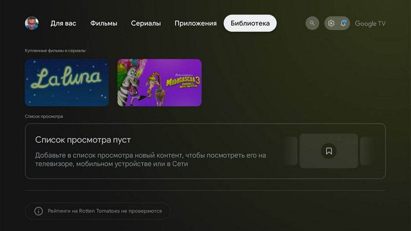 Библиотека купленных фильмов и сериалов на сервисах Google.