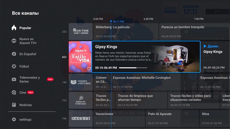 Здесь также есть Xiaomi TV+: там бесплатно транслируются сотни телеканалов с расписаниями, также есть самые разные фильмы и сериалы, спортивные каналы и так далее.