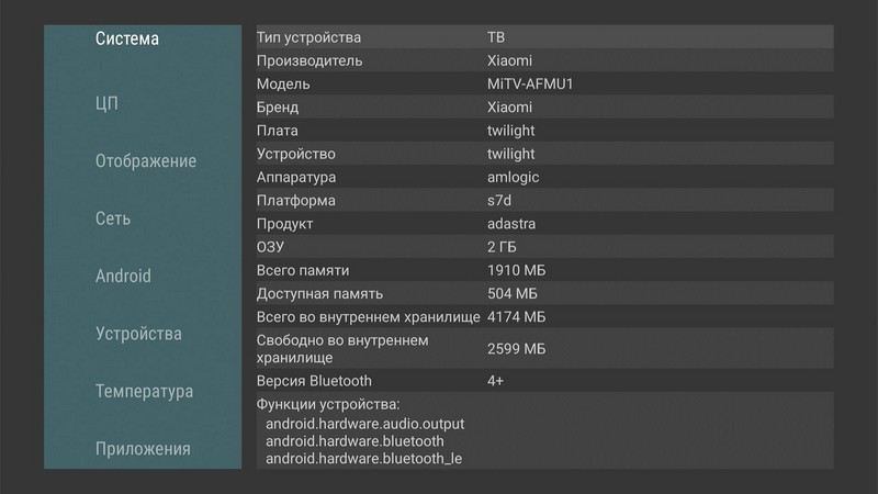 Если у вас есть железяка от Onn, нельзя ли попросить вывести данные о ее аппаратной начинке? Заранее спасибо.