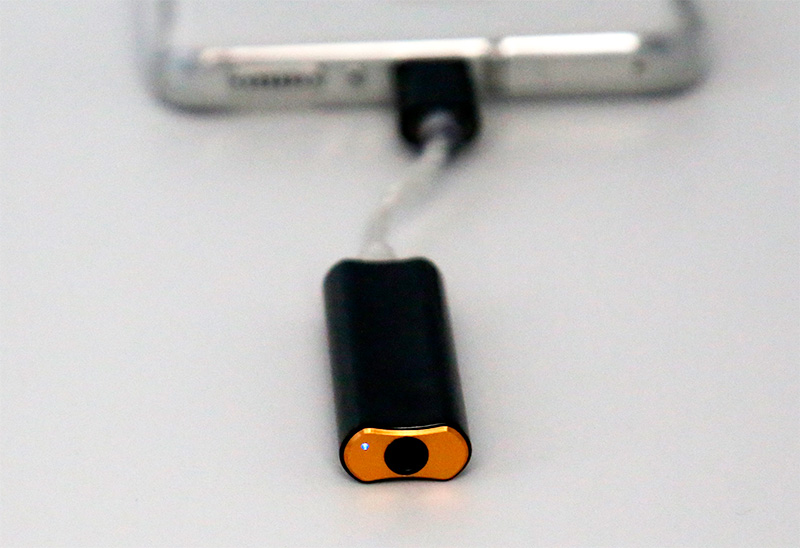 Достаточно типовой дизайн для современных мини-усилителей: корпус с аудиовыходом под проводное подключение наушников и гибкий кабель с адаптером Type-C для подключения к смартфону/планшету. Контакты кабеля с двух сторон имеют пластиковую защиту от излома.