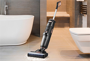 Что в нем такого особенного? Вертикальный беспроводной пылесос с роликовой щеткой из микрофибры, с высокой мощностью всасывания, временем автономной работы в 30 минут на полной мощности, подходит для разных поверхностей, имеет три режима уборки (просто всасывание, влажная протирка полов, мойка полов), имеет удобную зарядную станцию, режим быстрой самоочистки, голосовой ассистент и дисплей.
