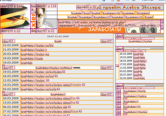 Также в этом окне можно задавать различные специальные параметры отображения сайта - например, с информацией о таблицах, ссылках и прочем.