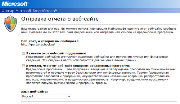 Специальный фильтр, распознающий подставные (фишинговые) сайты. Эта функция у браузера была и раньше, просто она некоторым образом модифицирована. Также добавилась возможность с помощью определенного пункта меню сообщить на сайт Microsoft о поддельном или вредоносном сайте.