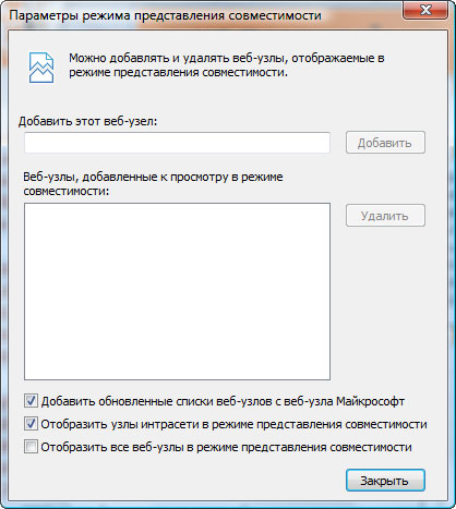 В восьмой версии введена функция просмотра сайтов в режиме совместимости. При этом сайт отображается так же, как в седьмой версии. Вы можете задать целый список сайтов, которые всегда будут отображаться только в режиме совместимости (то есть в режиме MSIE7).