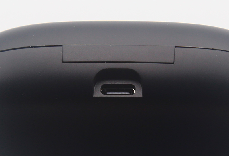 Наушники без кейса. Выполнены из пластика, покрыты материалом софт-тач, также есть вставки пластика "под металл". Центральная часть внешней площадки наушников - сенсорная, служит для управления.