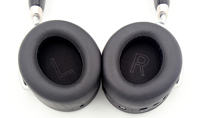 Чашки поворачиваются на 90 градусов (так наушники становятся более компактными), обозначения левой и правой чашек нанесены на ткань внутри наушников. Амбушюры также выполнены из очень приятной на ощупь экокожи, внутри - полиуретан.