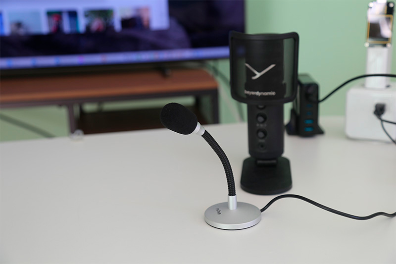 Купил я тогда на пробу микрофон Fifine Mini Gooseneck за €20, и до сих пор им вполне доволен: все абоненты отмечали, что звук стал заметно лучше и эхо пропало, а микрофон этот маленький и удобный, много места на столе не занимает.