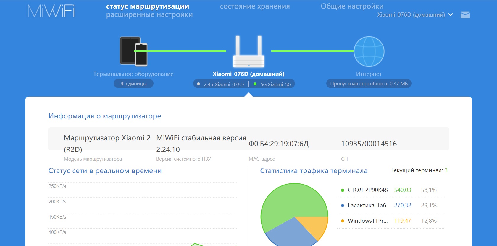 Ну и вот главное окно админки роутера. Там показано, сколько устройств и на какой частоте подключены к роутеру.