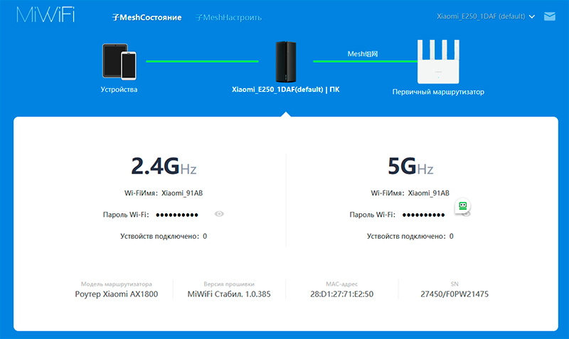 Причем все роутеры Xiaomi с поддержкой MESH совместимы между собой: любой из них можно делать основным роутером, а к нему подключать сателлиты - Xiaomi Mi Router AX1800, Redmi AX5 и так далее.