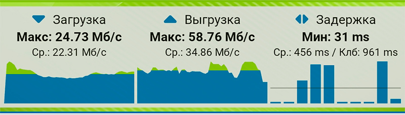 Для сравнения, вот что мне в тех же условиях выдает смартфон, подключенный к моему домашнему роутеру Keenetic.