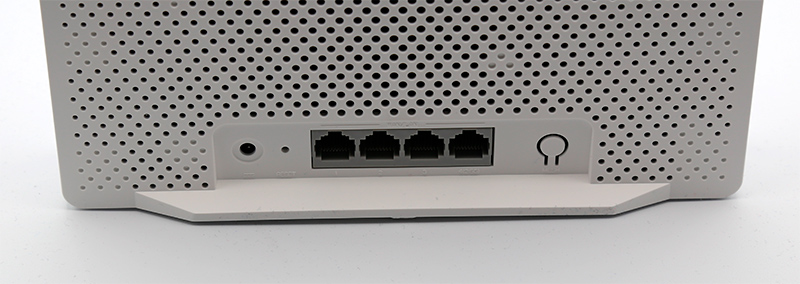 На задней части - вход адаптера питания, кнопка Reset, четыре порта, из которых три - гигабитные, один - на два с половиной гигабита (все они могут выступать как в качестве WAN, так и в качестве LAN), и кнопка подключения нового сателлита бесшовной сети MESH.
