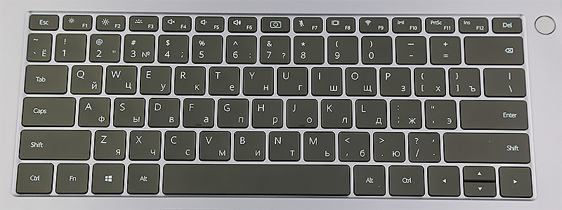 Теперь о клавиатуре. Справа от клавиатуры - кнопка питания, она же сканер отпечатка - это удобно.